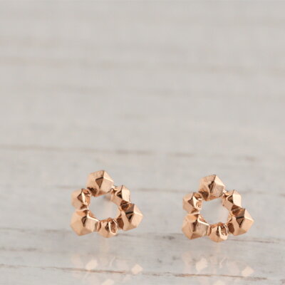 K18PG ピンクゴールドの地金のみで、無機質な鉱物のようなイメージで、不規則に並ぶデザイン。